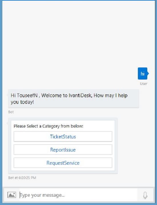 Its a bot which serves customer for their daily it related issues in any organization, We are giving demo on 4 areas like