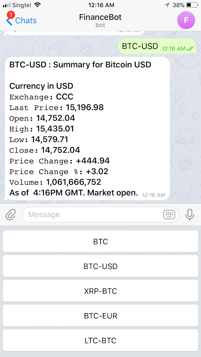 Some of my works include bitcoin bots, movie bots, food delivery bots, stocks info bots and many more.