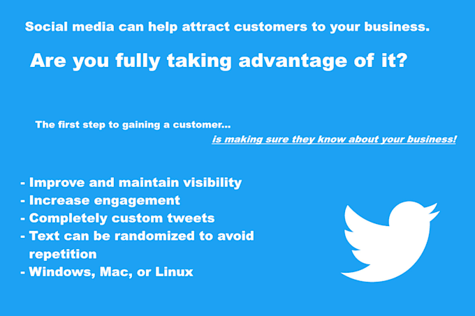 I will create a customized bot that will tweet predetermined messages of your choice on your desired schedule.- The bot can contain multiple schedules.
