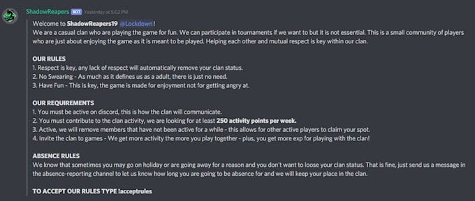 All conversation and questions that are needed will be confirmed by you before I start developing and if you have chosen a package which allows the user to first have to accept the rules, a command will need to be provided.