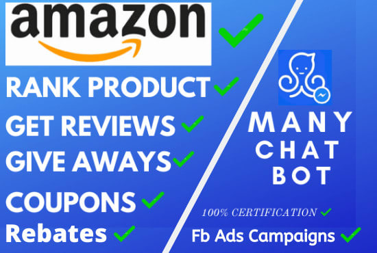 I will set up a Manychat chatbot for you Amazon FBA business to help you rank your product listings faster + get reviews + set rebates + manage facebook ads of your product + add different coupons (20% off , 40% off ).